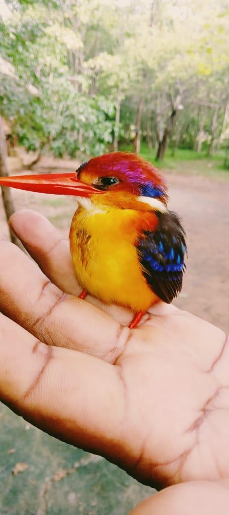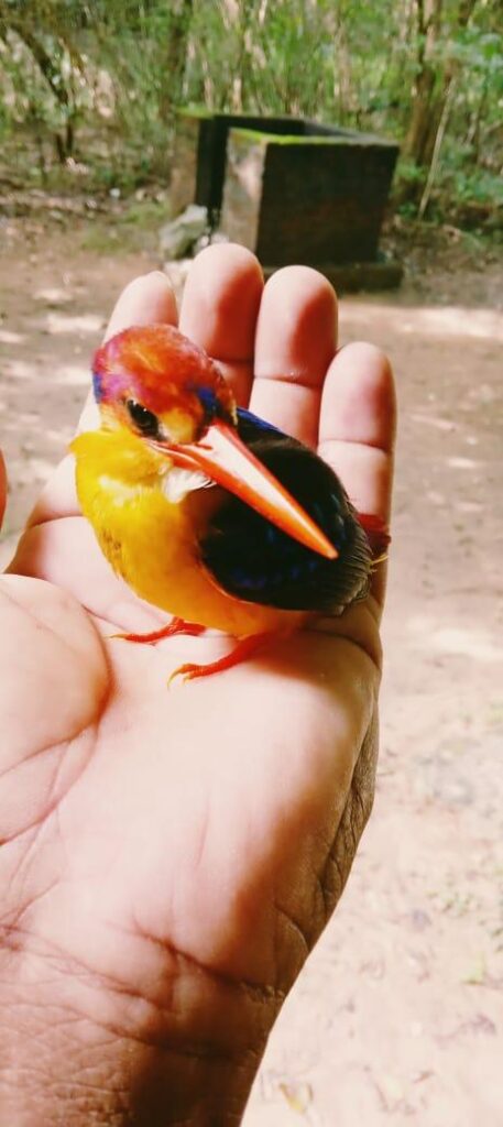 Our day was brightened by this little Three Toed Kingfisher (Ceyx erithaca, now called the Oriental Dwarf Kingfisher) who flew into The Villa at Far Cry. Our feathered friend seemed content to nestle in our Villa Manager’s hand for a while, and eventually flew away.